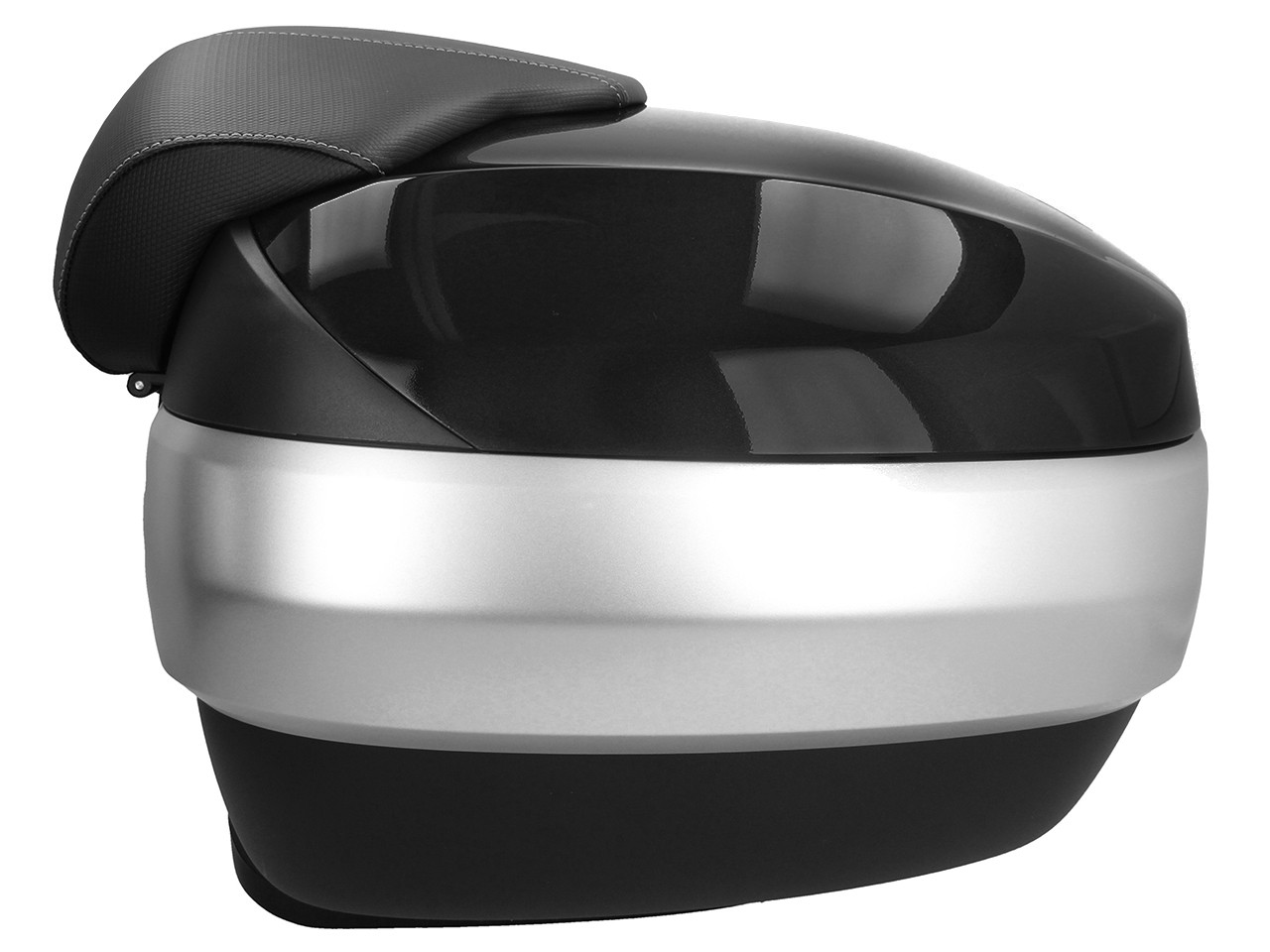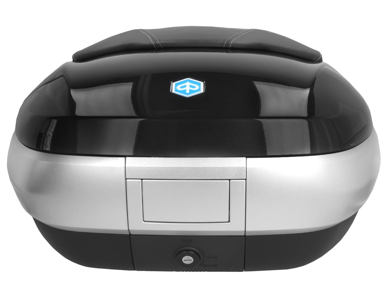 Spacieux, avec système de montage rapide. Offre de la place pour 2 casques modulaires. Coque supérieure peinte dans la couleur du véhicule, avec coussin dorsal confortable pour le passager, dans le même matériau et la même finition que la banquette. Poche pour documents à l'intérieur et bandes élastiques pour stabiliser les bagages.