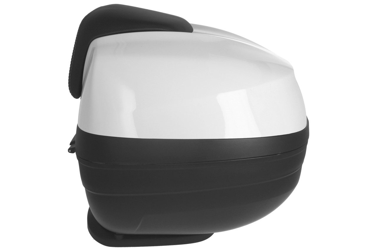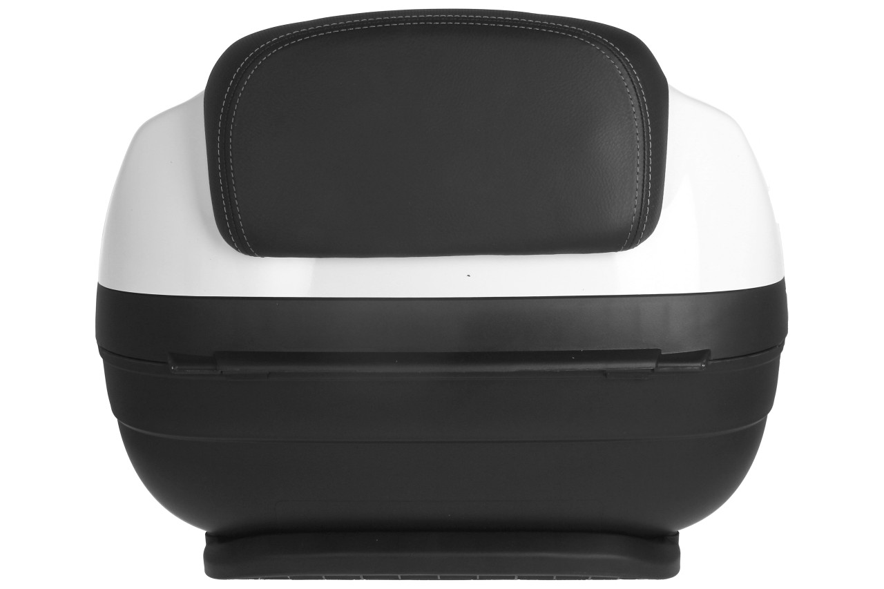 Top Case avec système de montage rapide. Offre de la place pour un casque modulable. Coque supérieure peinte dans la couleur du véhicule, avec coussin dorsal confortable pour le passager, dans le même matériau et la même finition que la selle.