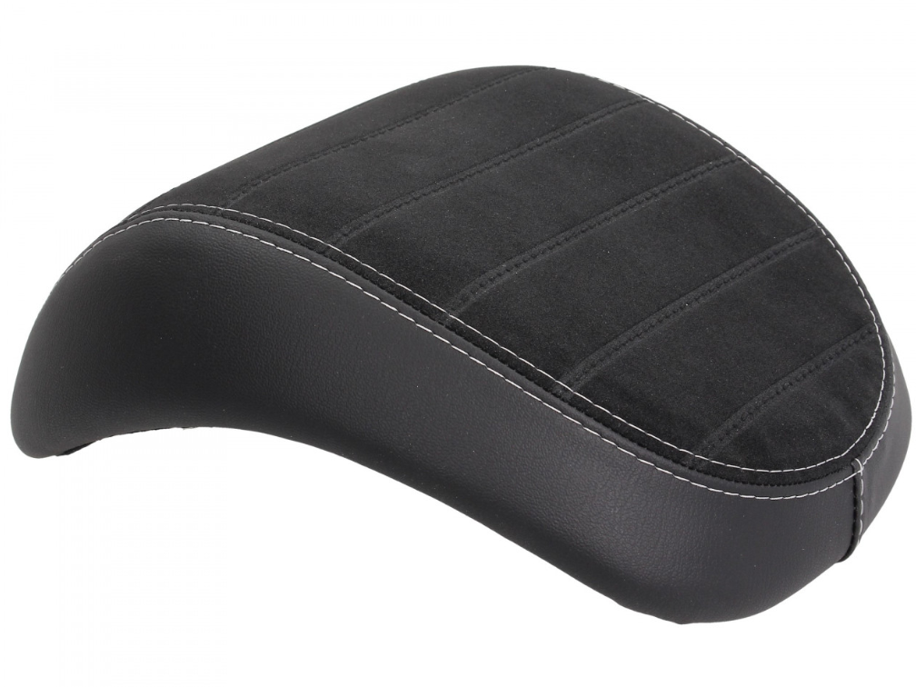 Dossier noir avec couture blanche pour le passager. Convient au top case d'origine pour Vespa Primavera / Sprint, dans le look de la selle d'origine.